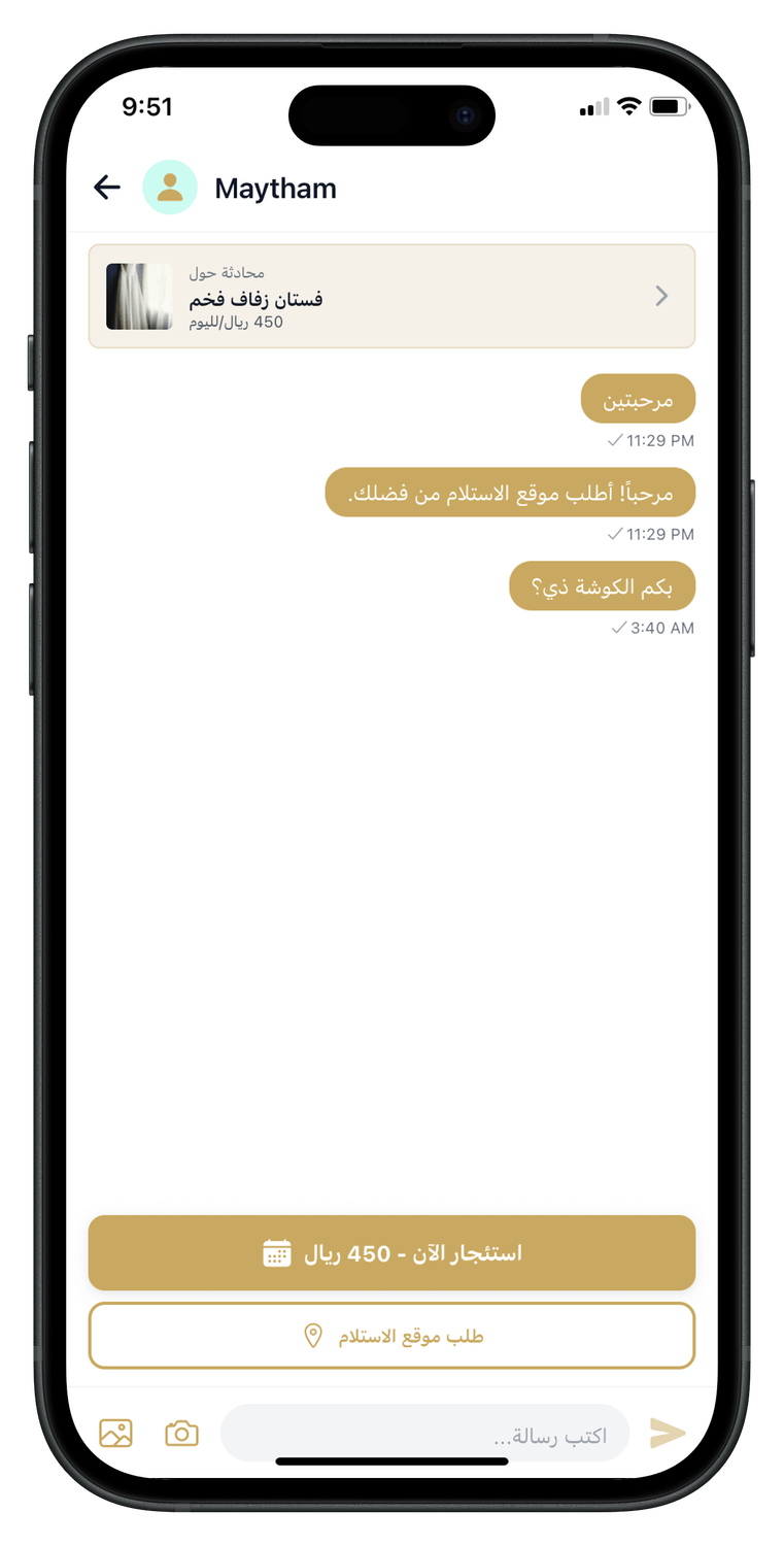 احجزي فستانك أو خدمتك المفضلة في ثوانٍ مع تأكيد فوري.